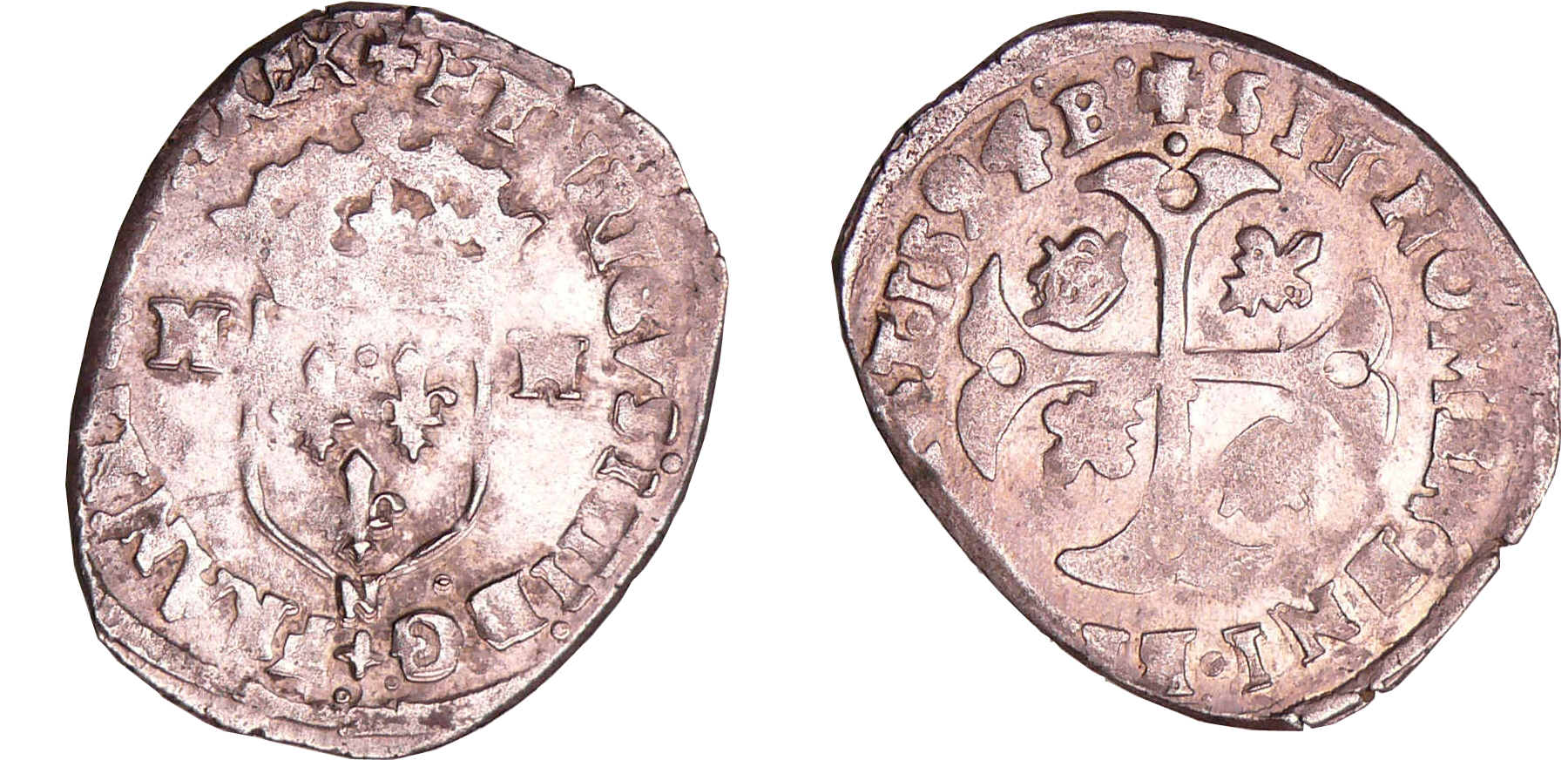 A/ HENRICVS IIII D G FRAN ET NAVA REX. Ecu de France couronnée et accosté de deux H. Atelier à l’exergue.