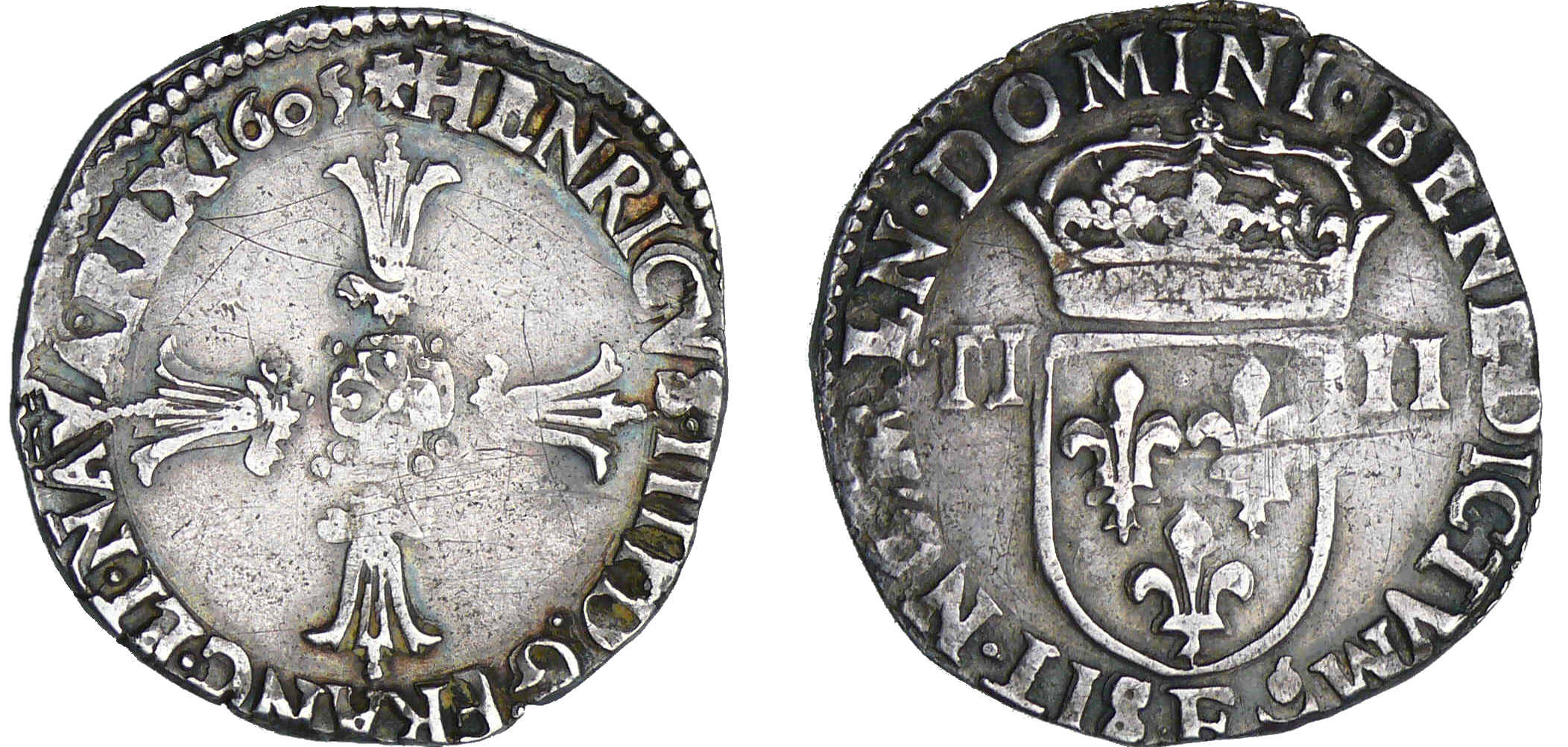 / Henri IV (1589-1610) – Quart d’écu à la croix feuillue – 1605 F (Angers)