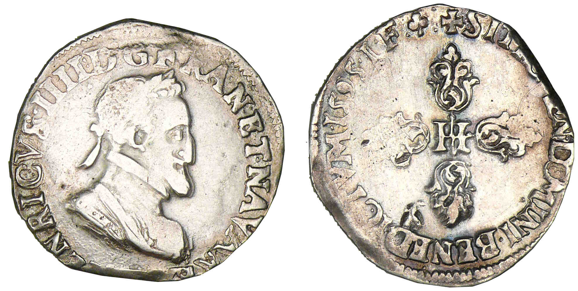 A/ + HENRICVS IIII D G FRANC ET NAVA REX. Buste lauré et cuirassé à droite. Lettre d’atelier sous le buste.