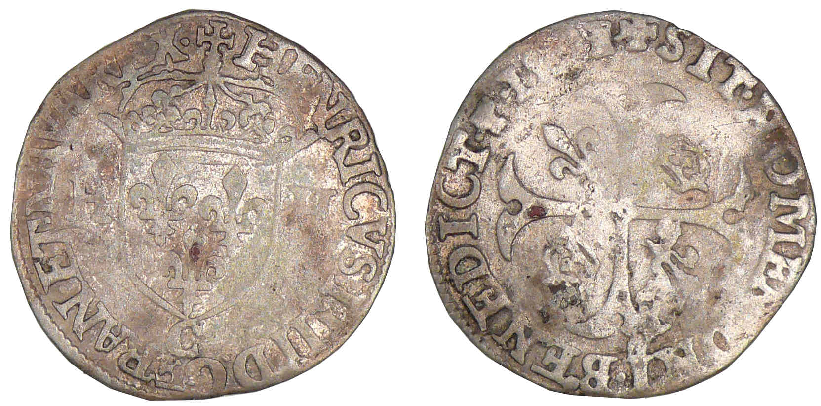 A/ HENRICVS IIII D G FRAN ET NAVA REX. Ecu de France couronné et accosté de deux H. Atelier à l’exergue.