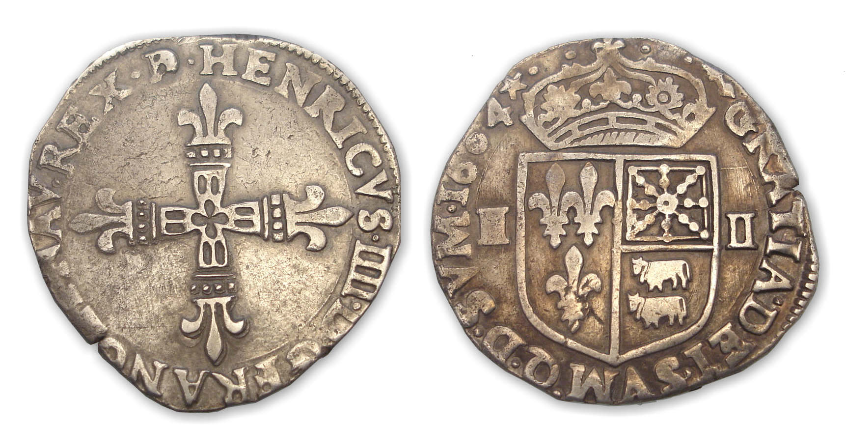 Avers : A/ HENRICVS. IIII. D. G FRANC. ET. NAVA. REX. DB Croix fleurdelisée.
