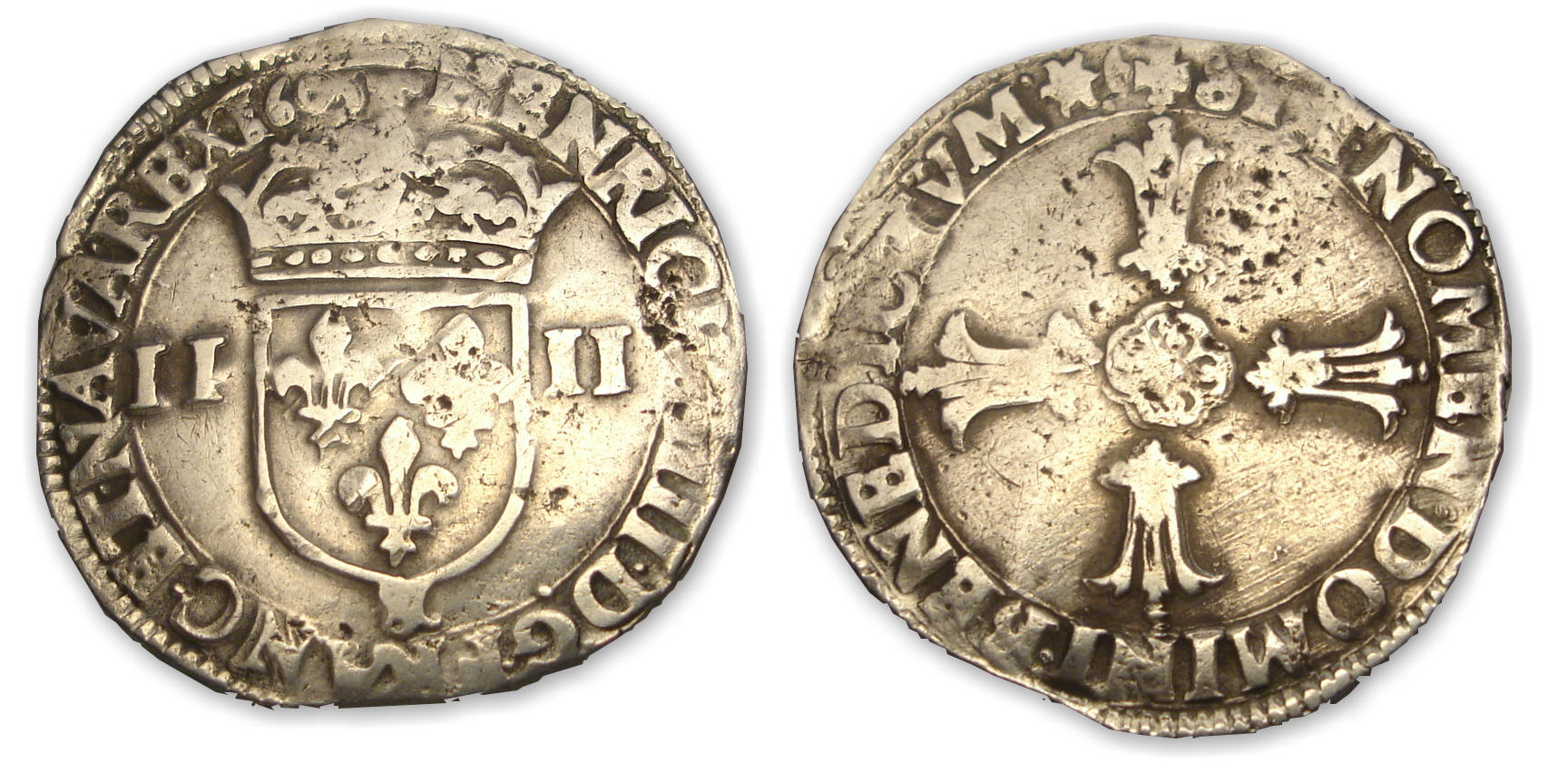 Revers : R/ SIT. NOMEN. DOMINI. BENEDICTVM (atelier) Écu de France couronné accosté de II. – II.