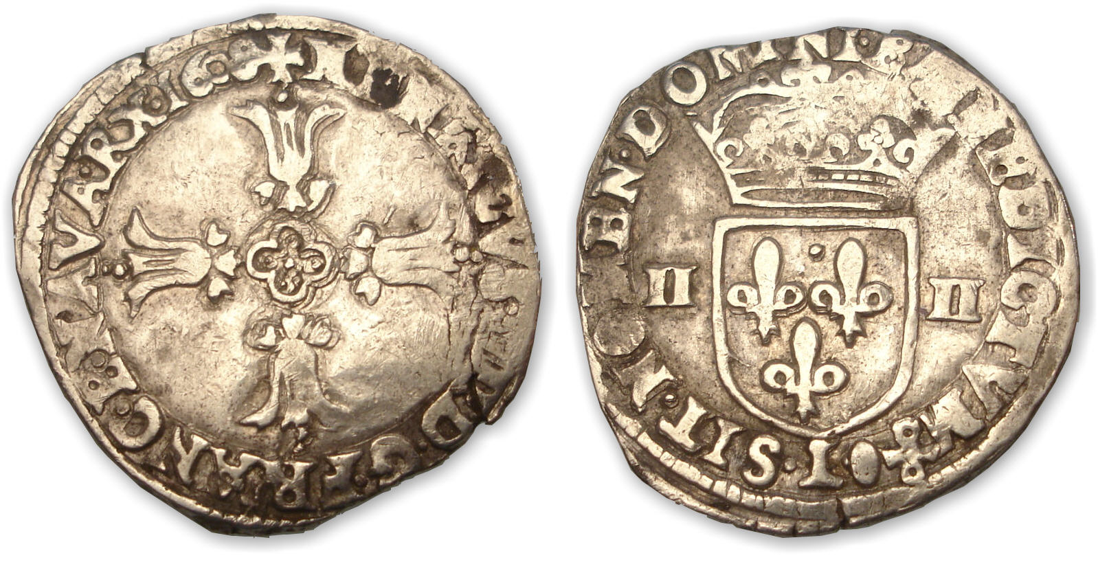 Revers : R/ SIT. NOMEN. DOMINI. BENEDICTVM (atelier) Écu de France couronné accosté de II. – II.