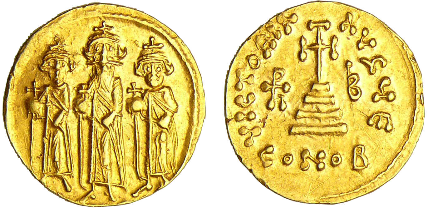 A/ dd NN hERACLIUS ET hERA CONST PP AVG. Héraclius et son fils Héraclius Constantin de face.