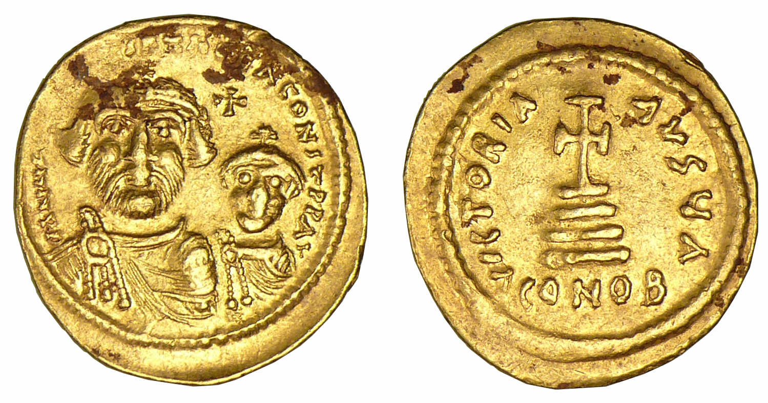 A/ dd NN hERACLIUS ET hERA CONST PP AV. Héraclius et son fils Héraclius Constantin de face.