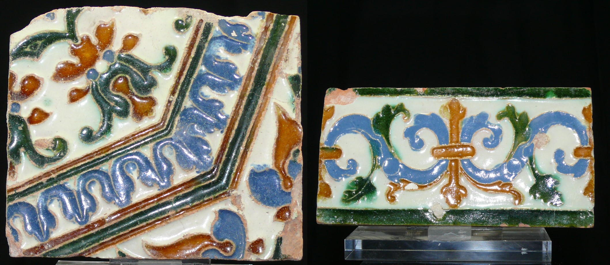 Hispano-Mauresque – Lot de 2 carreaux de faïence – 1500 ap. J.-C.