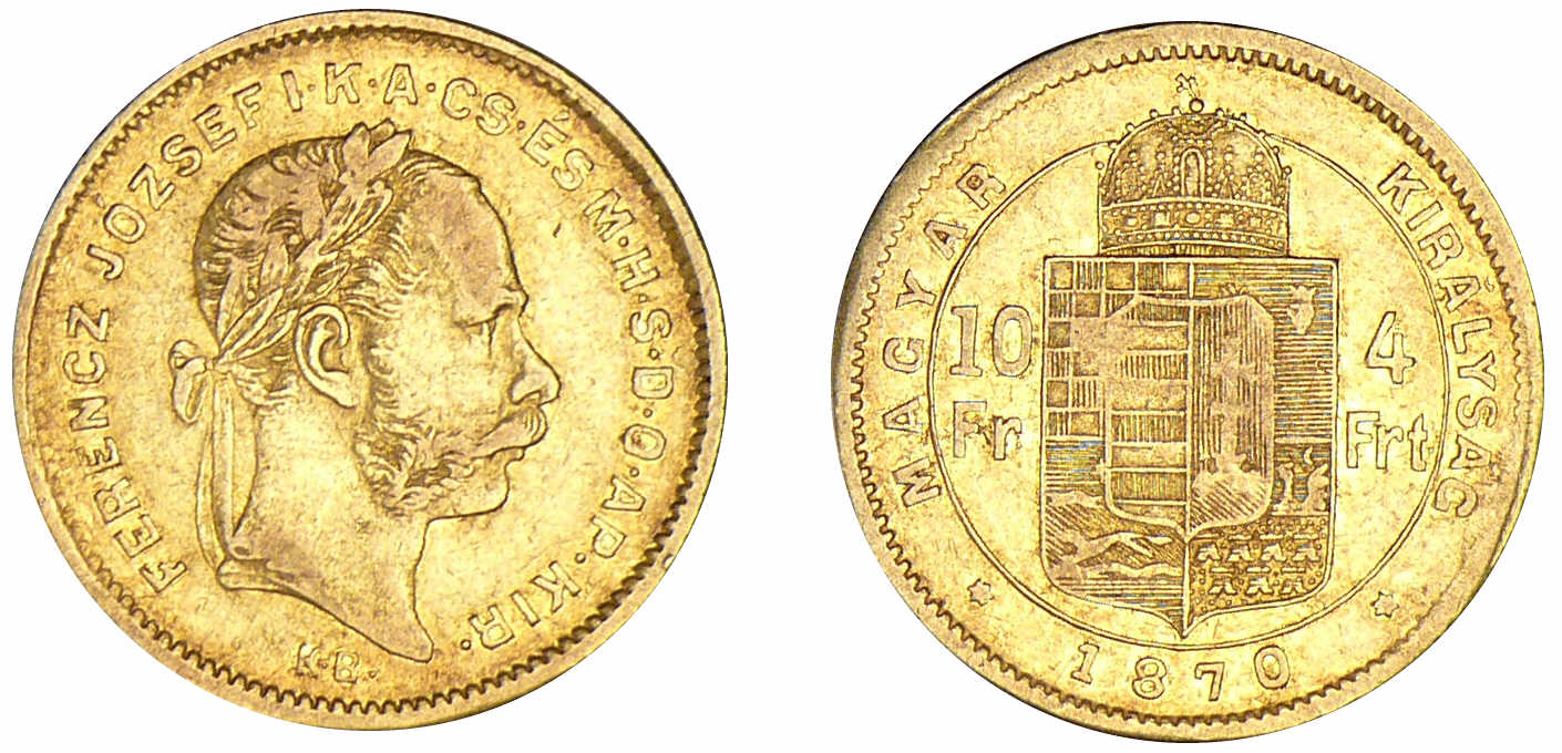 / Hongrie – Joseph Ier – 4 florins / 10 francs 1870