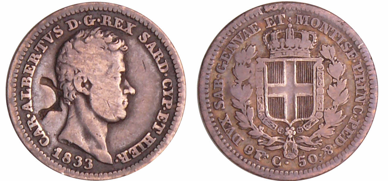 / Italie – Carlo Alberto(1831-1849) – 50 centesime 1833 (Torino)