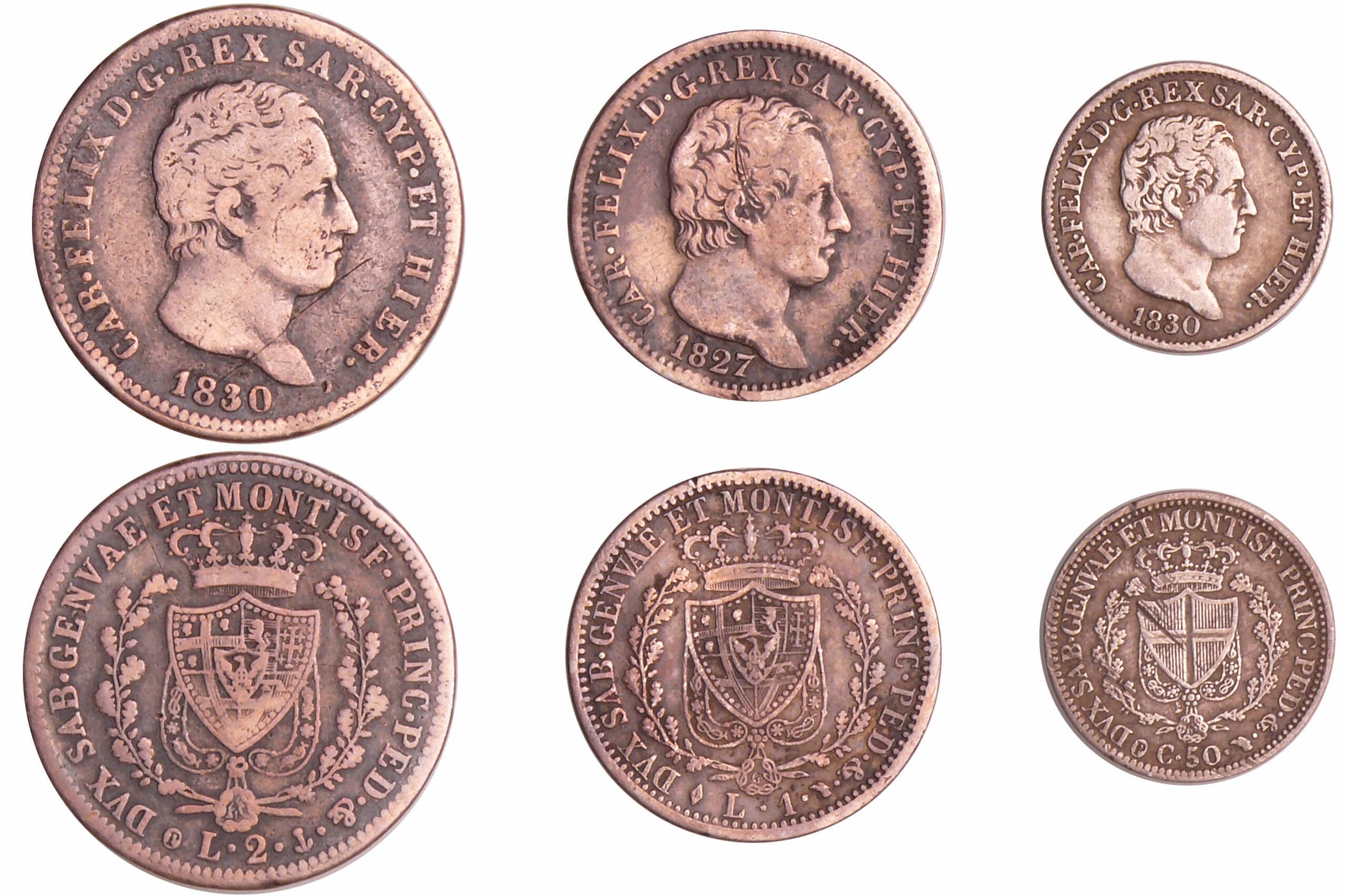 quantité de Italie - Carlo Felice (1821-1831) - Lot de 3 monnaies 2 lire 1830, 1 lire 1827 et 50 cent 1830