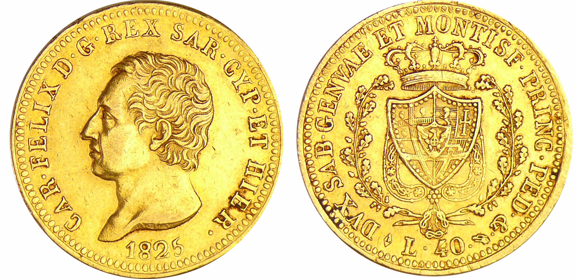 Italie – Carlo Felice (1821-1831) – Règne de Sardaigne – 40 lires 1825 (Turin)