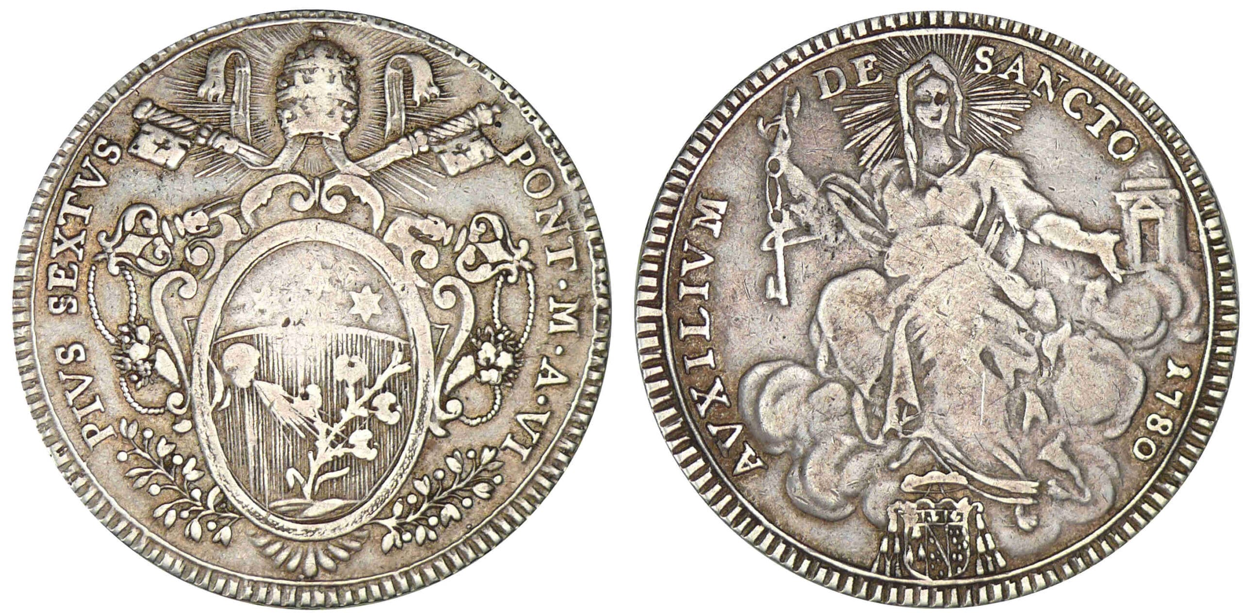 Italie – Etat papal – Pie VI – Scudo 1780 (Rome)