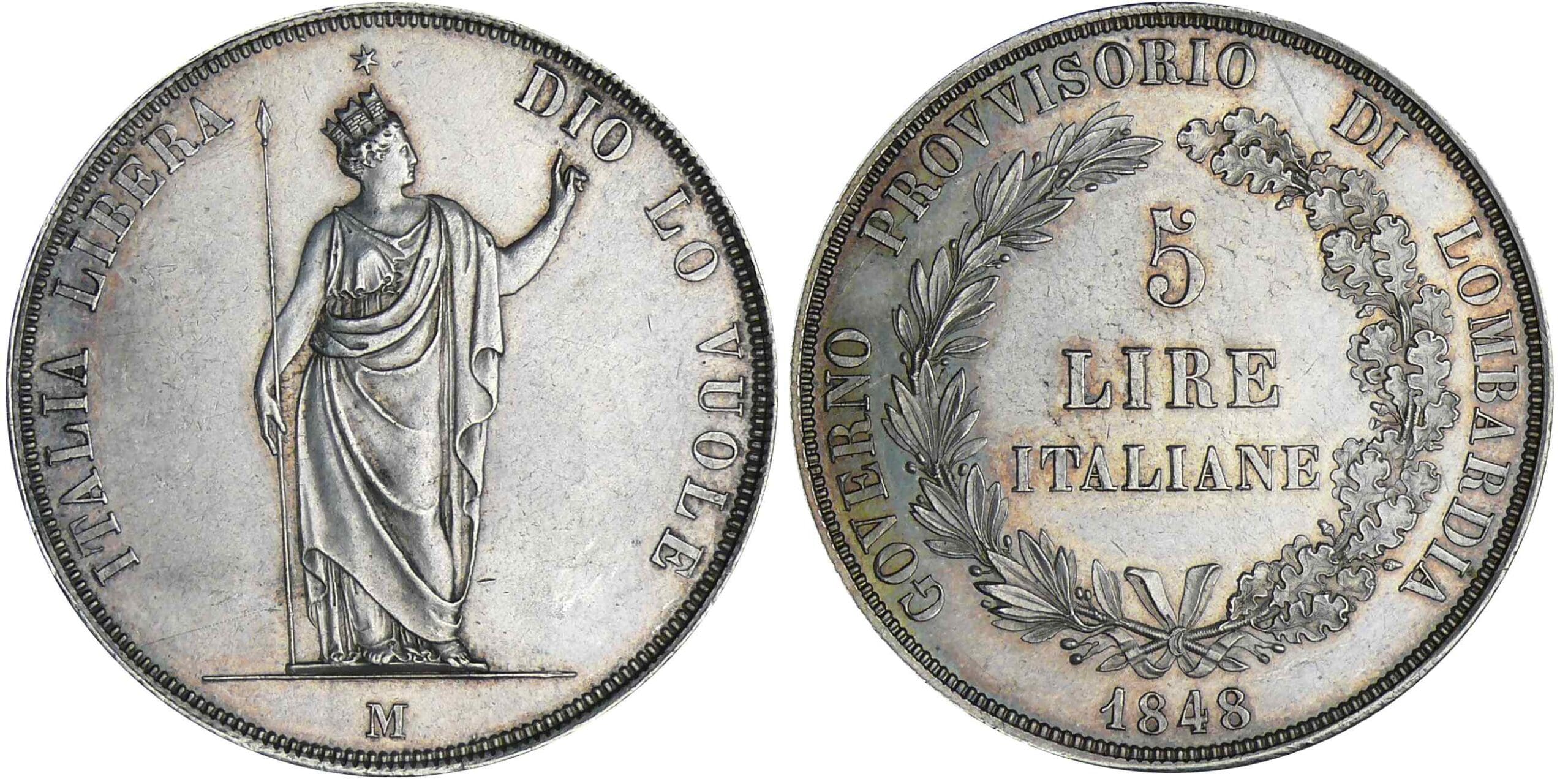 / Italie – Gouvernement provisoire – Lombardie – 5 lire 1848 (Milan)