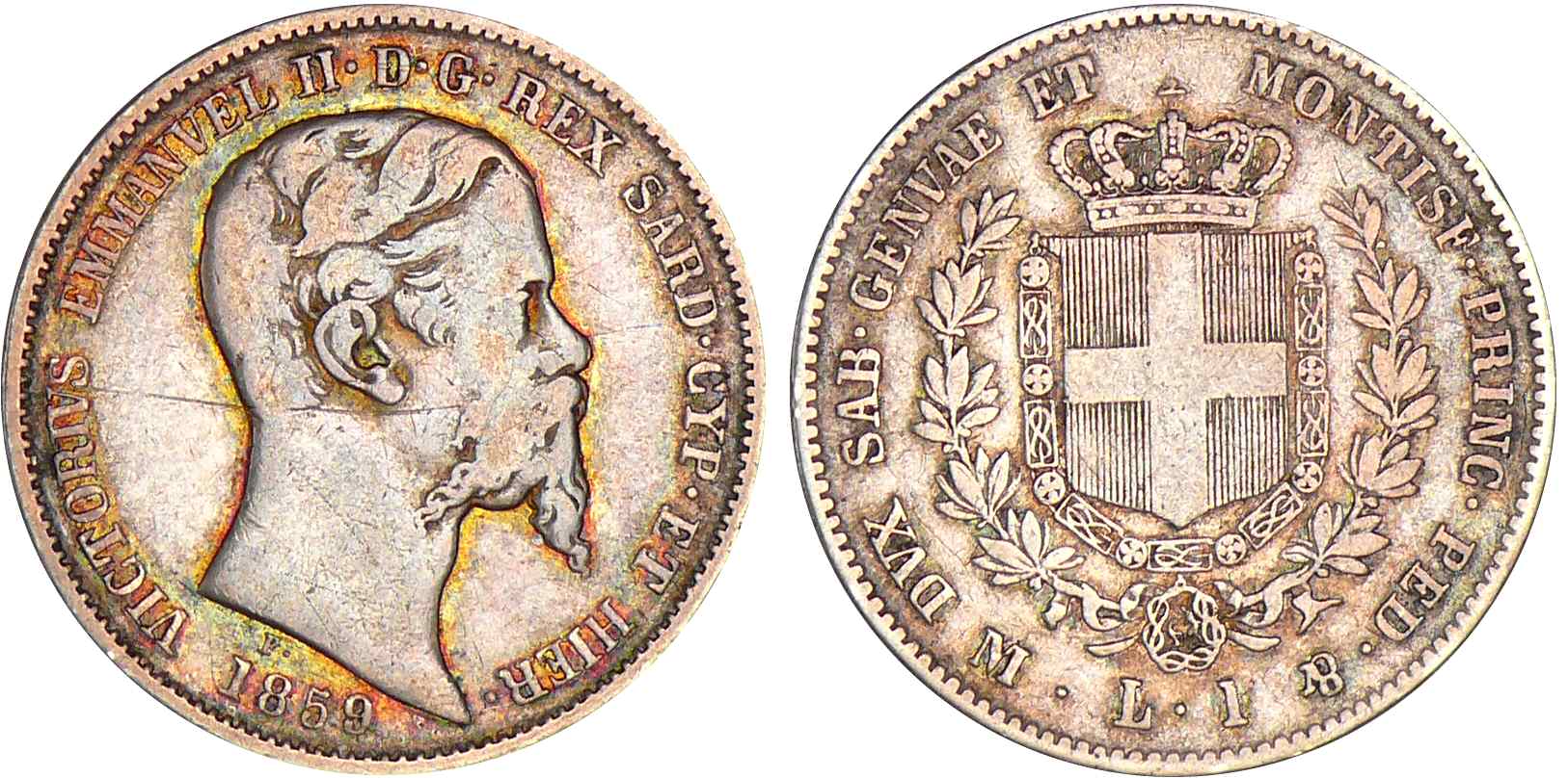 / Italie – Règne de Sardaigne – Vittorio Emanuele II – 1 lira 1859 (Milan)