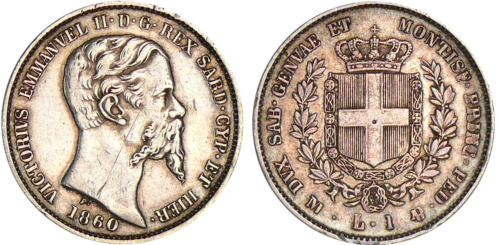 / Italie – Règne de Sardaigne – Vittorio Emanuele II – 1 lira 1860 (Milan)