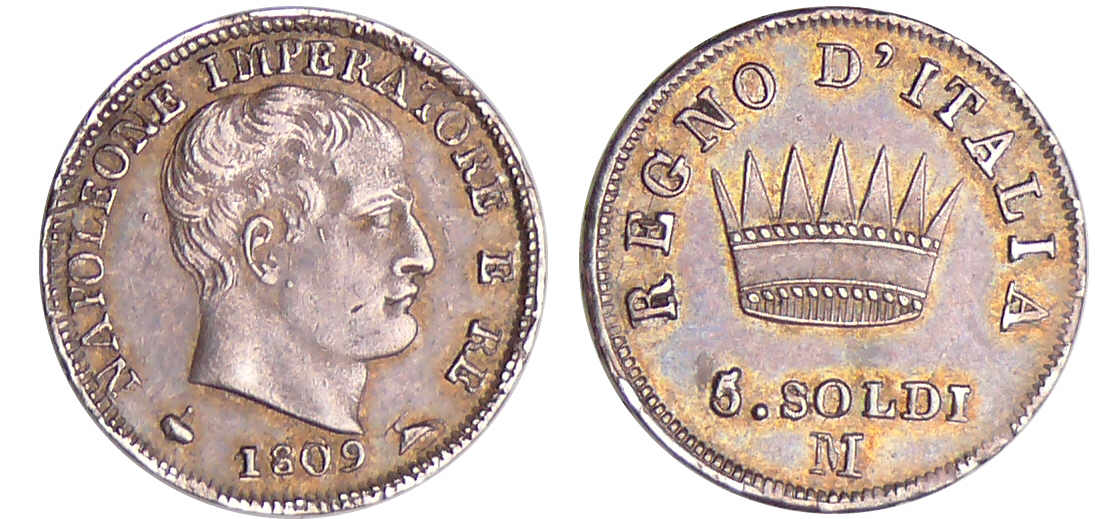 Italie – Règne d’Italie – 5 soldi 1809 M (Milan)