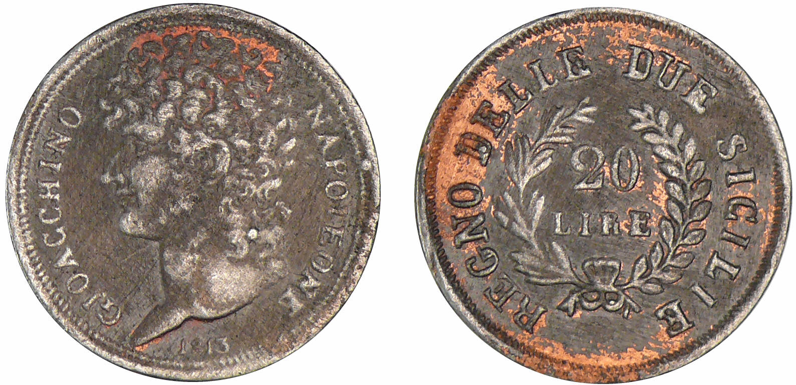 / Italie – Royaume de Naples et des deux Siciles – Joseph Napoléon – 20 lire 1813 (Naples) – Surmoulage en étain bronzé
