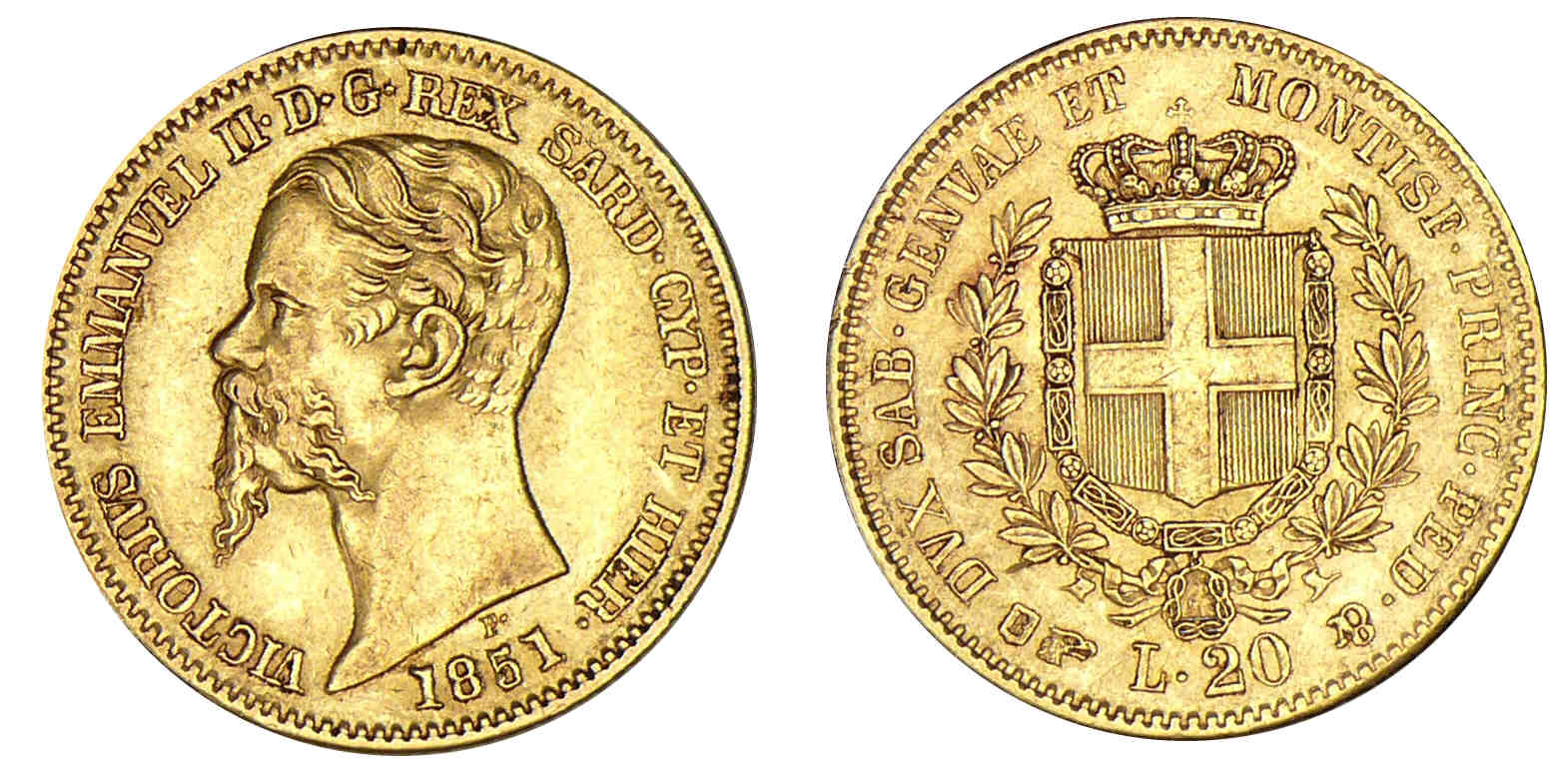 Italie – Royaume de Sardaigne – Victor Emmanuel II – 20 lires 1851 (Turin)