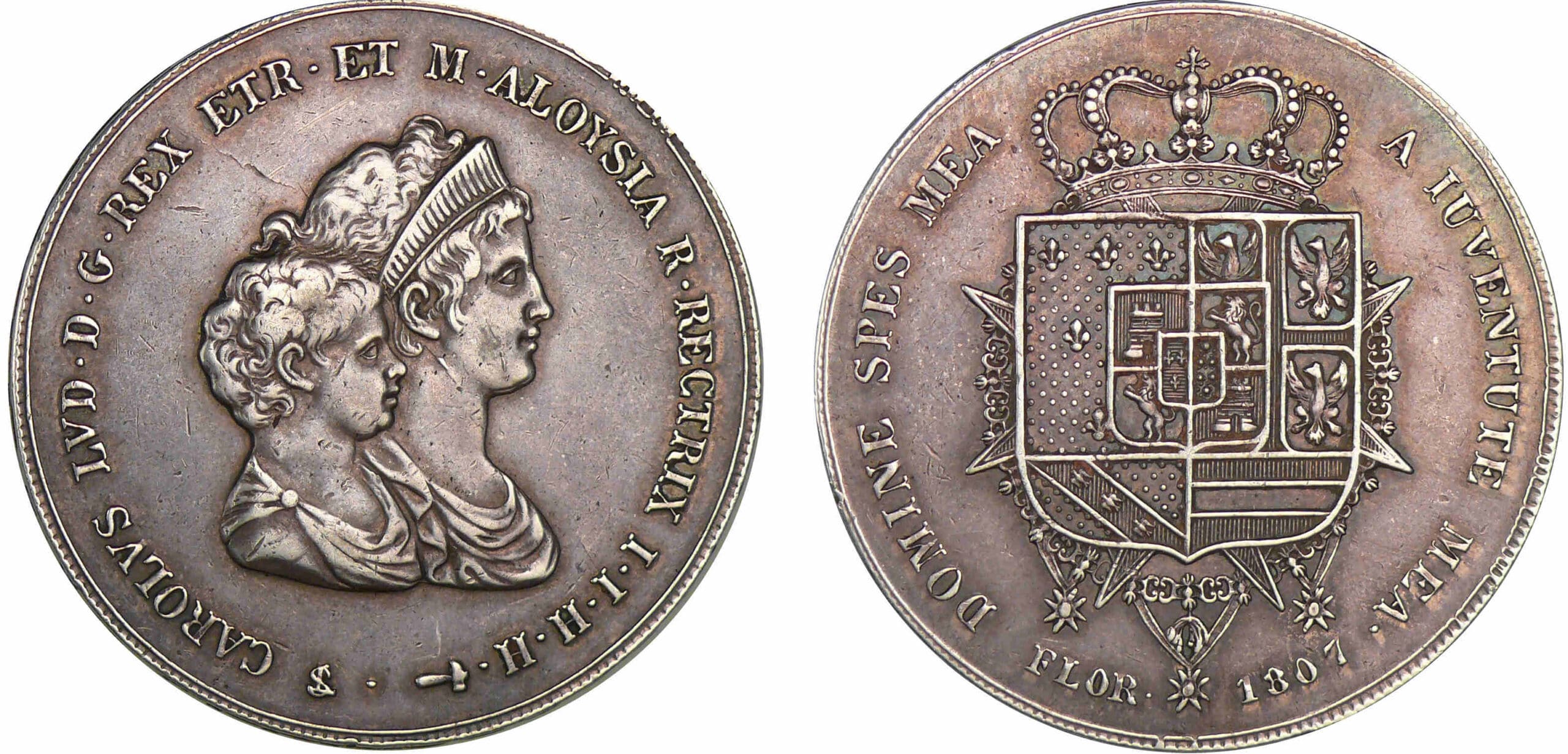 R/ Ecu couronné. DOMINE SPES MEA – A IUVENTUTE MEA – (millésime) FLORENTIAE