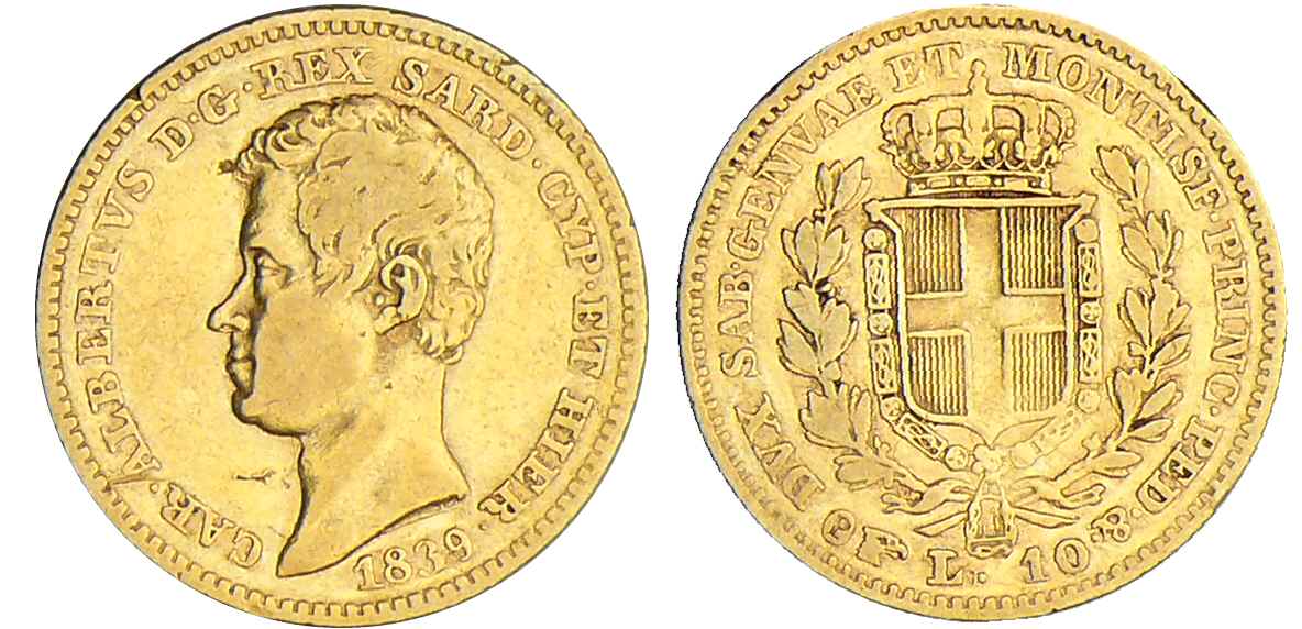 / Italie – Sardaigne – Carlo Alberto – 10 lire 1839 T (Turin)