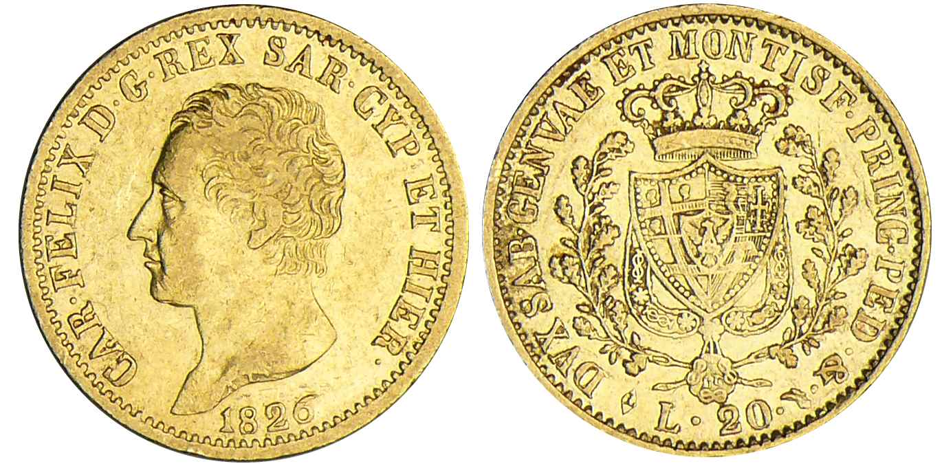 / Italie – Sardaigne – Carlo Felice – 20 lire 1826 T (Turin)