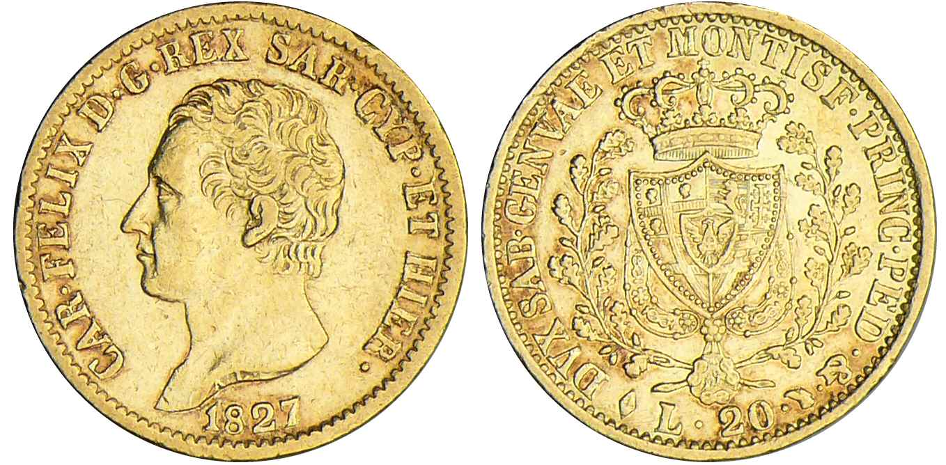 Italie – Sardaigne – Carlo Felice – 20 lire 1827 T (Turin)