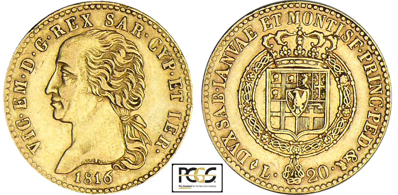 Italie – Sardaigne – Vittorio Emanuele I – 20 lire 1816 (Turin)