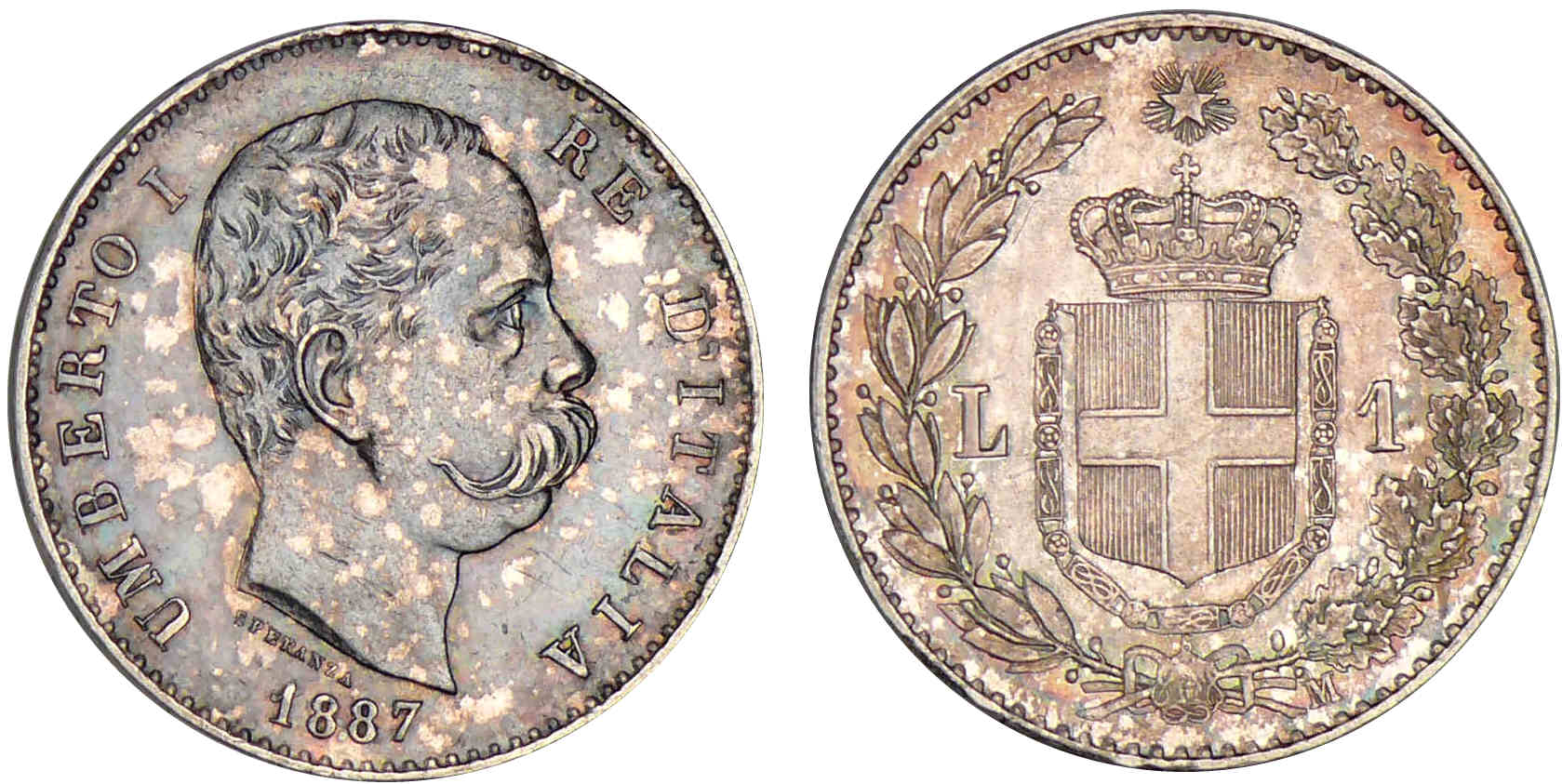 Italie – Umberto Ier – 1 lire 1887 M (Milan)