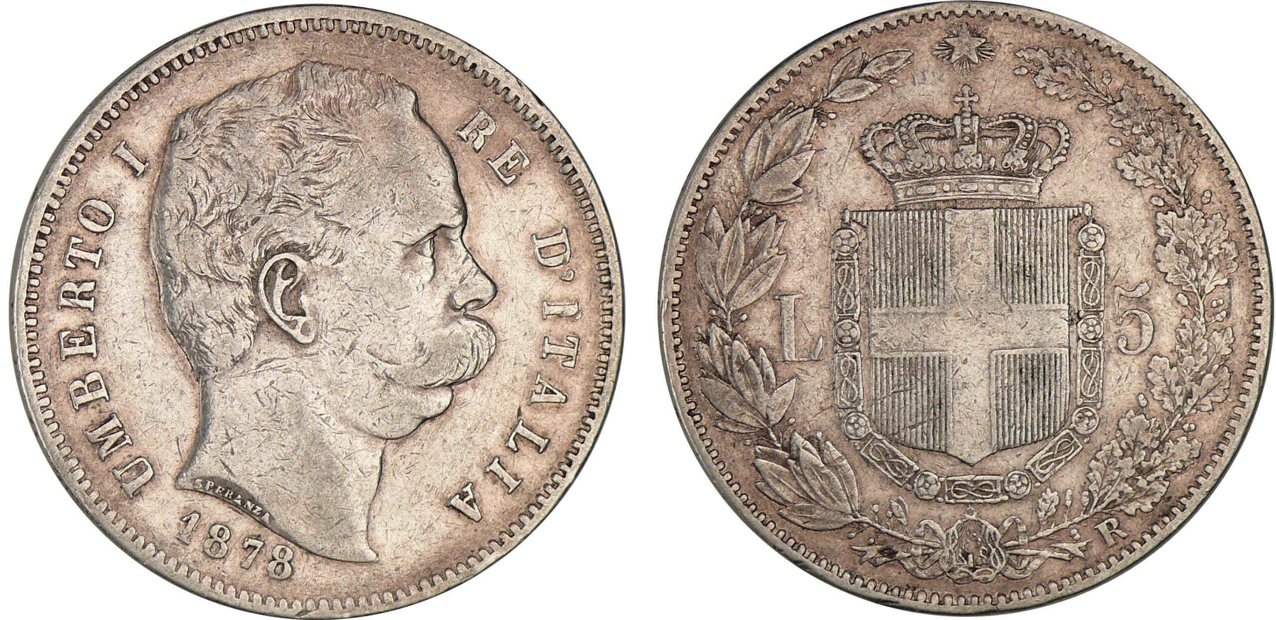 Italie – Umberto Ier – 5 lires 1878 R (Rome)