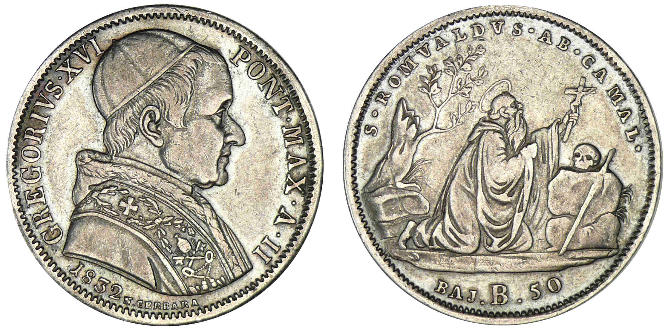 / Italie – Vatican – Grégoire XVI – 50 baiocchi 1832 B (Bologne)