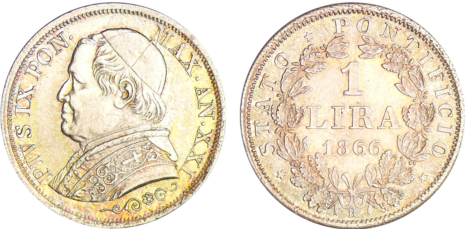 Italie – Vatican – Pie IX (1849-1866) – Lira 1866 Anno XXI