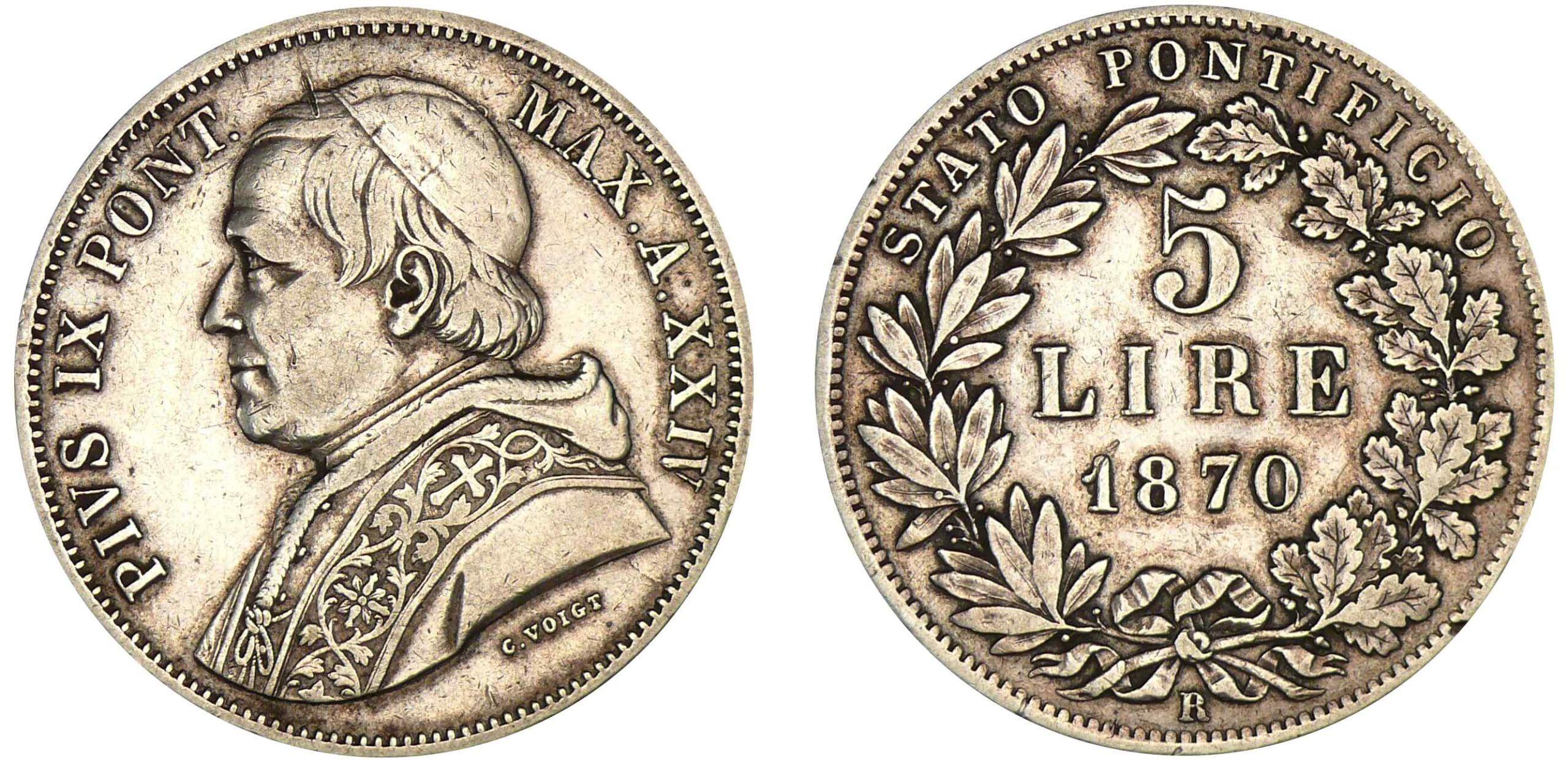 Italie – Vatican – Pie IX – 5 lires 1870 XXIV