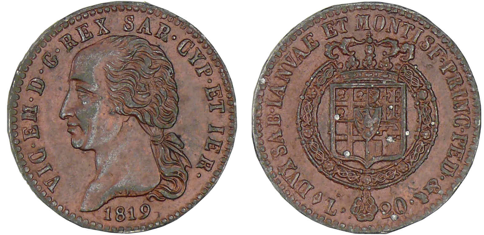 Victor Emmanuel I (1814-1821). A/ Tête nue à gauche.