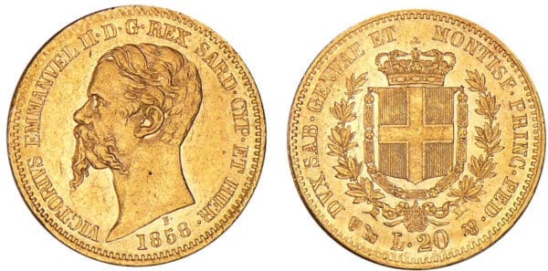 / Italie – Victor Emmanuel II – 20 lires 1858 (Gênes)