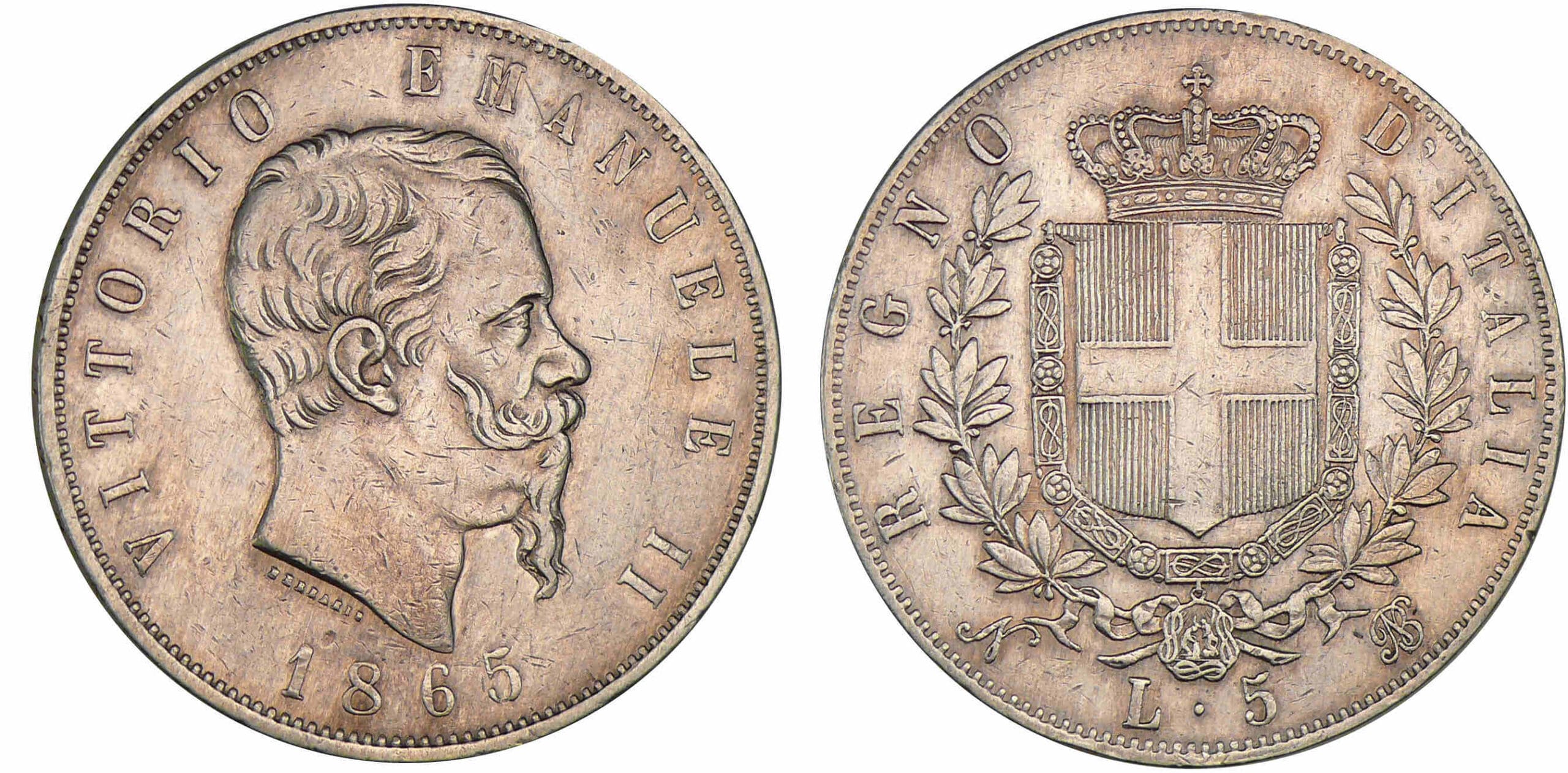 / Italie – Victor Emmanuel II – 5 lire 1865 N (Naples)
