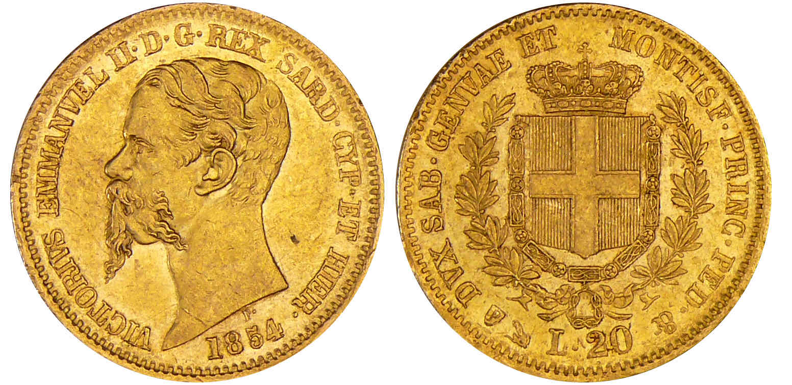 Italie – Vittorio Emanuele II – 20 lire 1854 (Gênes)