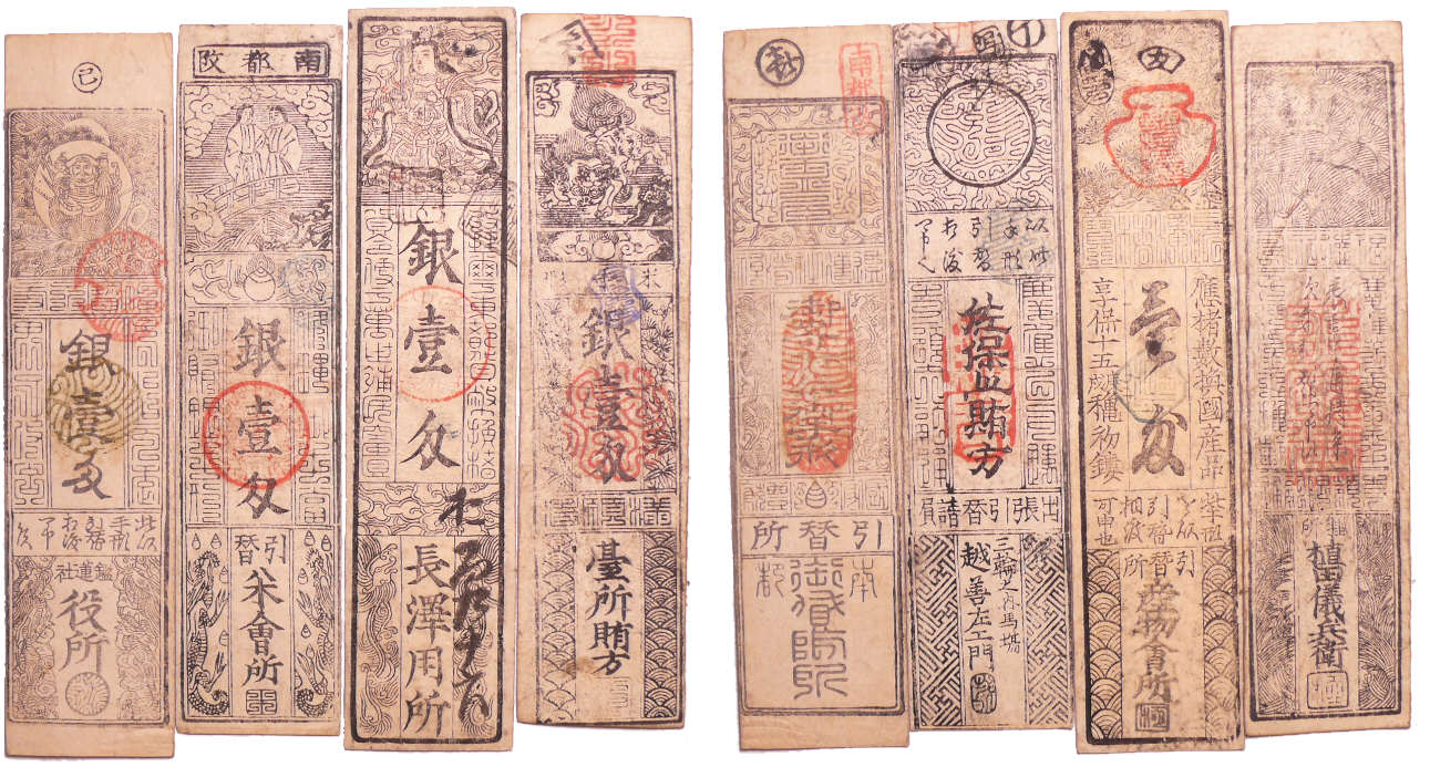 Japon – Lot de 4 billets de 1 Monme d’Argent, Hansatsu