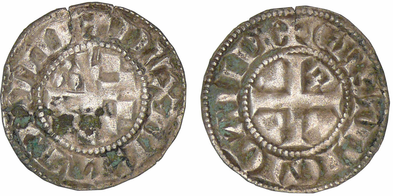 Revers : R/ + CASTRI gIgANPI – Croix cantonnée d’un châtel au 2ème canton.