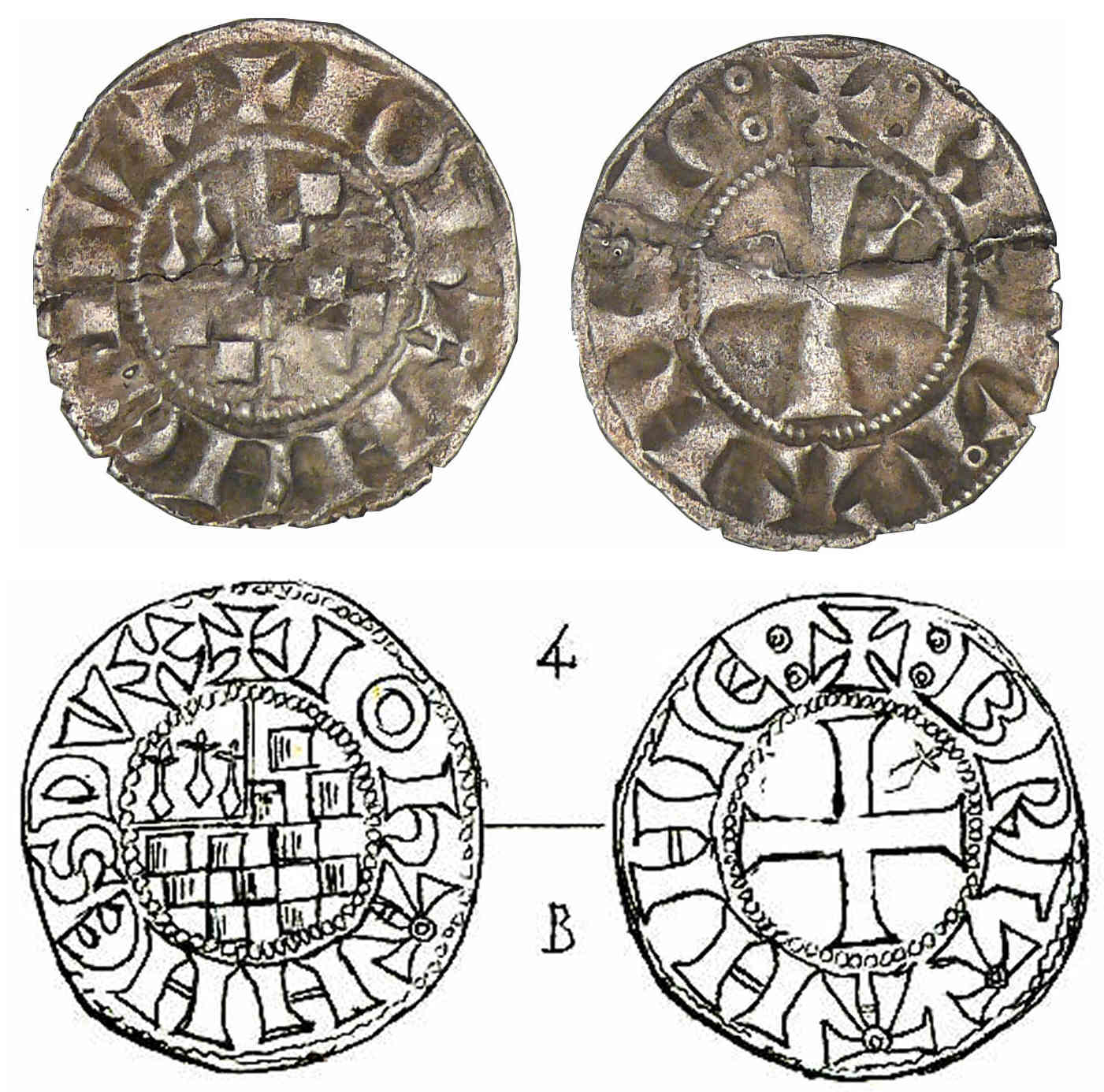 Avers : A/ + IoJAHHES DVX – Dreux au franc quartier d’hermine, occupant le tiers du champ, contenant trois mouchetures.