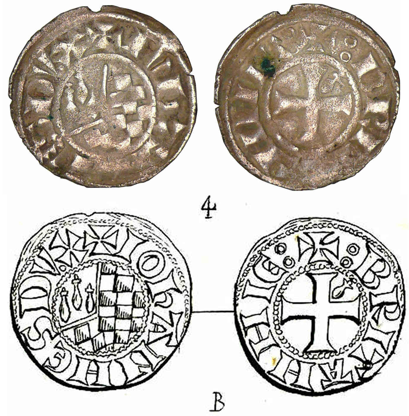Revers : R/ + (BpIŒAHHIE( – Croix cantonnée d’un Ç au 2ème canton.