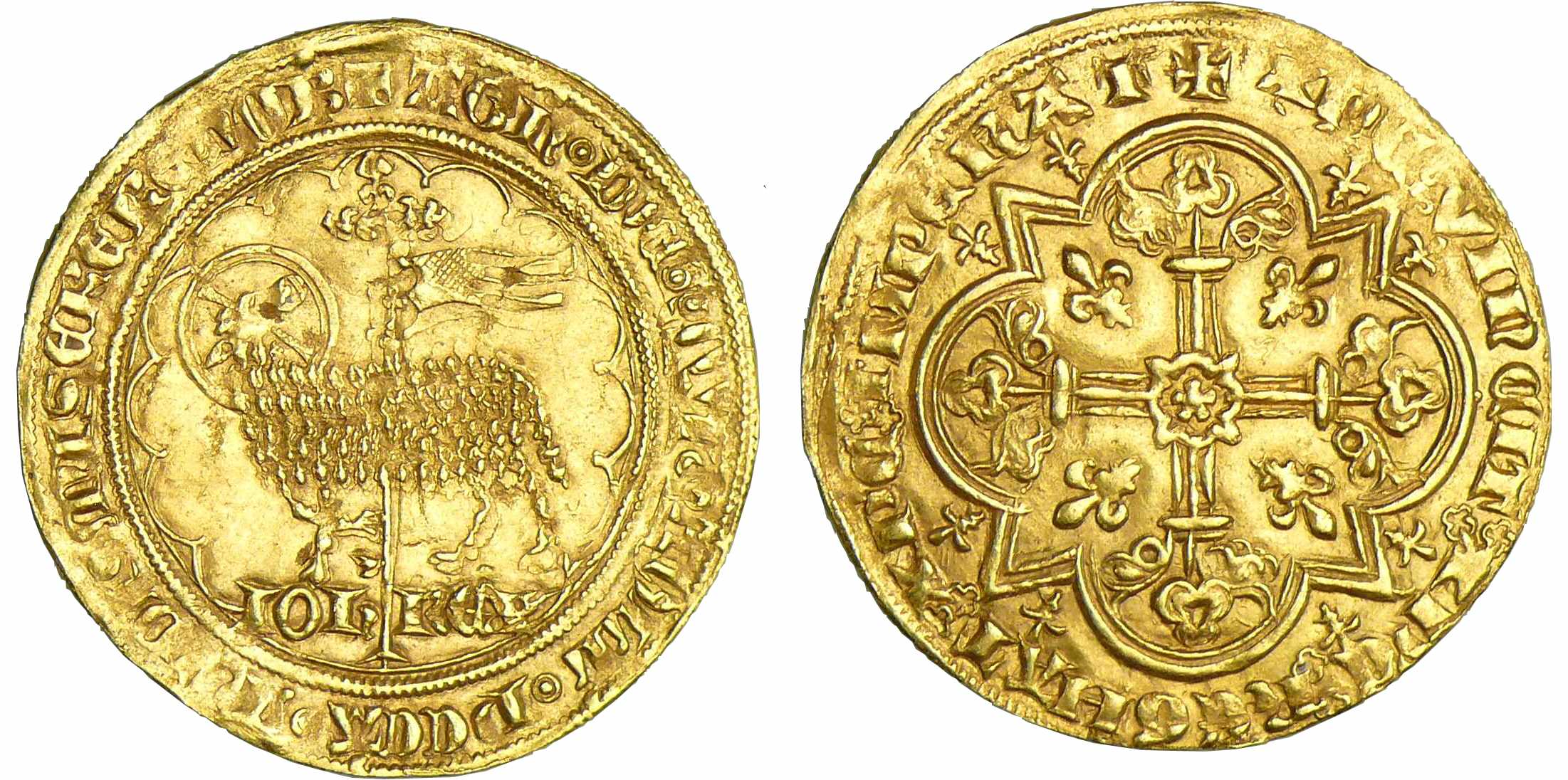 Avers : A/ + An• DEI• QVI• TOLL• DCCA• mVDI• mISERERE• nOB. Agneau pascal à gauche, tournant la tête à droite avec un nimbe crucigère. A l’exergue IOh’ – REX.