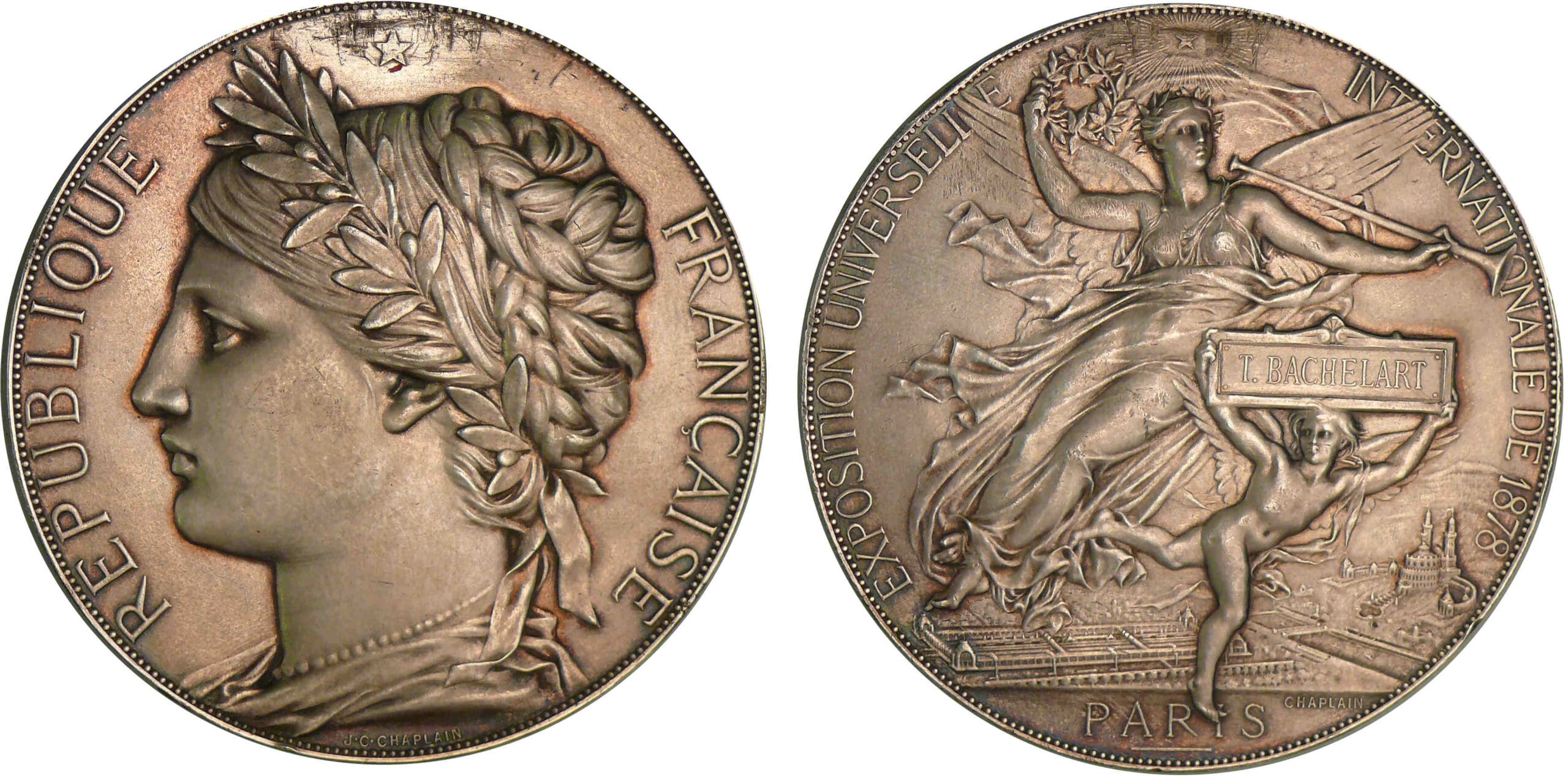 Médaille en argent signée J.C. CHAPELIN, exposition universelle 1878