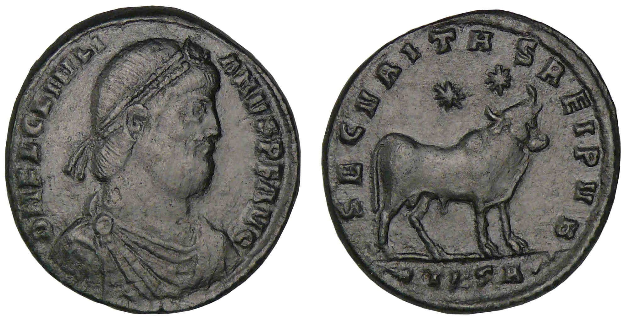 / Julien II le Philosophe – Double maiorina (363, Thessalonique) – Le bœuf Apis