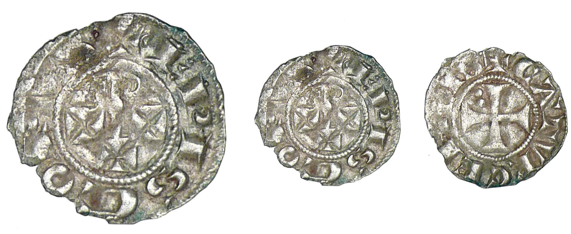 A/ + EPISCOPVS. Crosse sur une croisette entre deux autres croisettes.