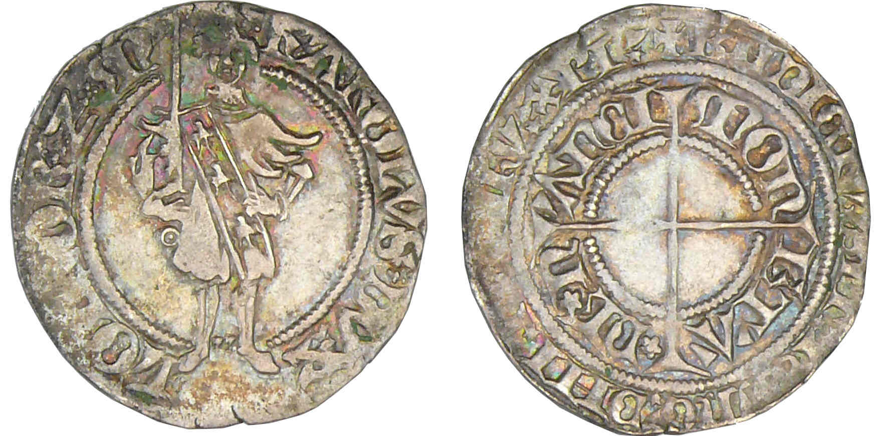 Avers : Charles II (1390-1431). A/ KAROLVS DVX LOTHOR Z M. Le duc debout de face, tenant une épée.