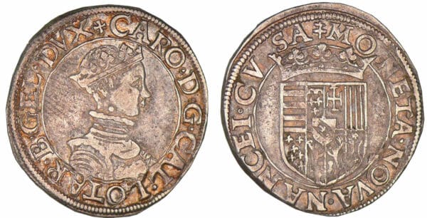 Charles III le grand duc (1545-1608). A/ (croix de Lorraine) CARO. D: G: CAL: LOTAR. B. GEL. DVX. Buste couronné de Charles III à droite, portant cuirasse et col légèrement fraisé.