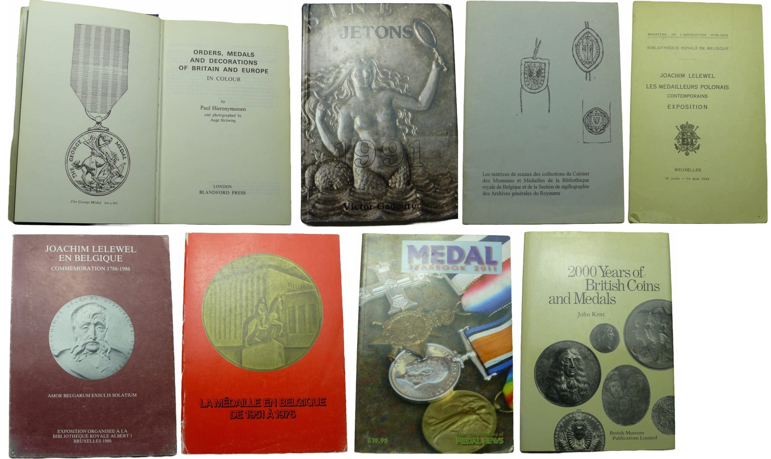 Avers : 1- La médaille en Belgique de 1951 à 1976 , 2- Medal yearbook 2011 , 3- Les médailleurs polonais contemporains, Joachim Lelewel 1933 , 4- Les matrices de sceaux des collections du Cabinet des monnaies et médailles de la Bibliothèque royale de Belgique et de la section de sillograohie des archives générales du royaume , 5- 2000 years of Britisch coins and medals , 6- Jetons,Victor Gadoury 1991 , 7- Orders, medals ans decorations of Britain and Europe , 8- Joachim Lelewel en Belgique, Commémoration 1786-1986.
