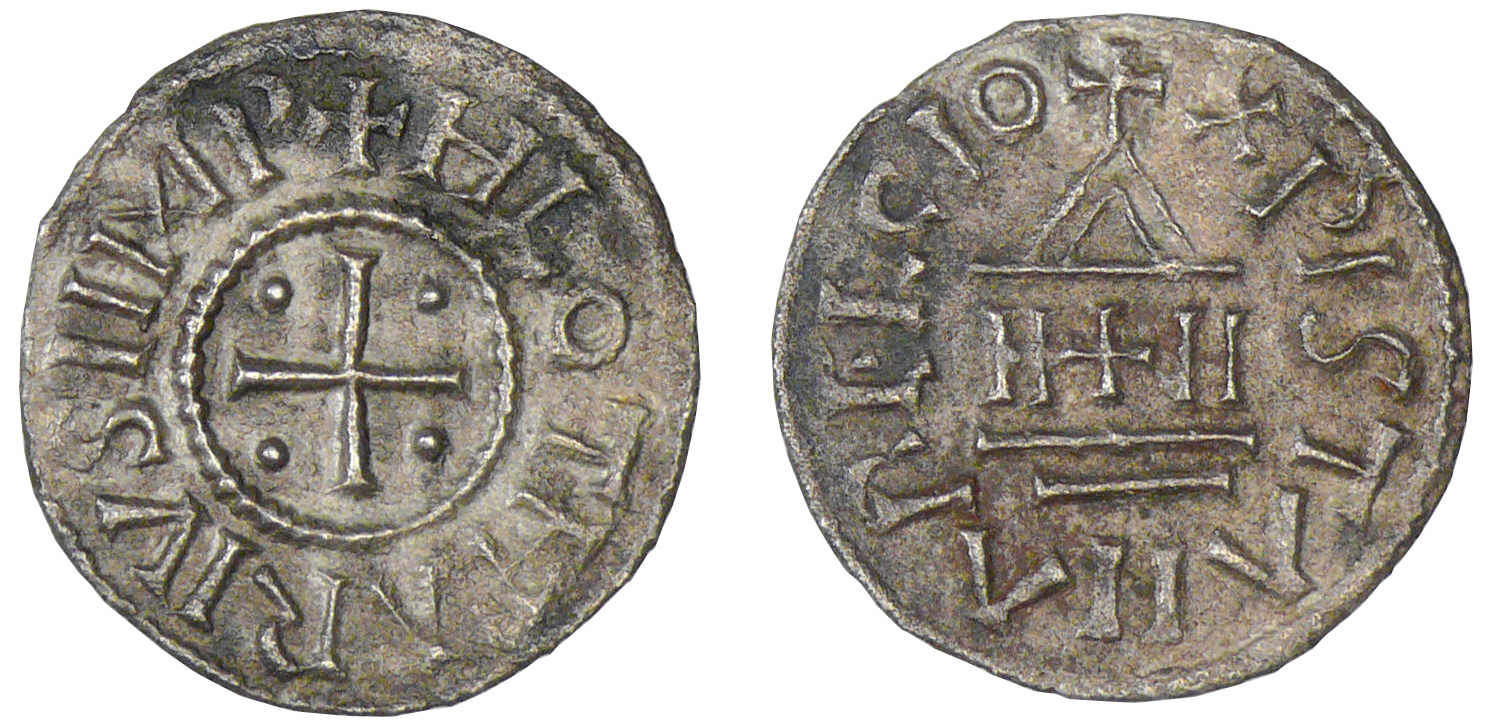 A/ + HLOTHARIVS IMP. Croix cantonnée de quatre besants.