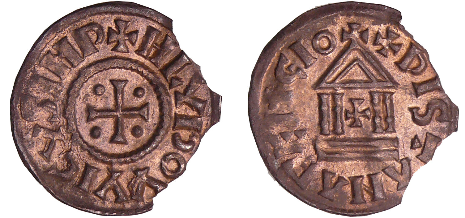 Observation : Monnaie provenant du trésor de Luzancy N° 68. Légende fautive PISTANA. Flan irrégulier.