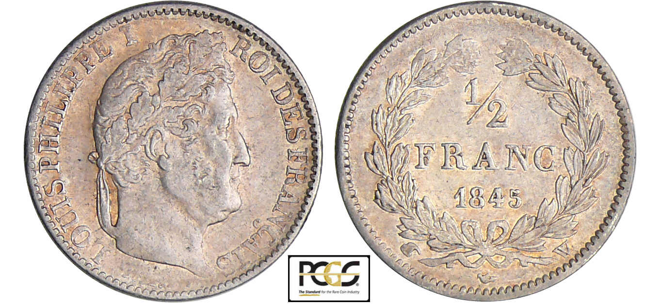 Louis-Philippe Ier (1830-1848) – 1/2 franc 1845 W (Lille)