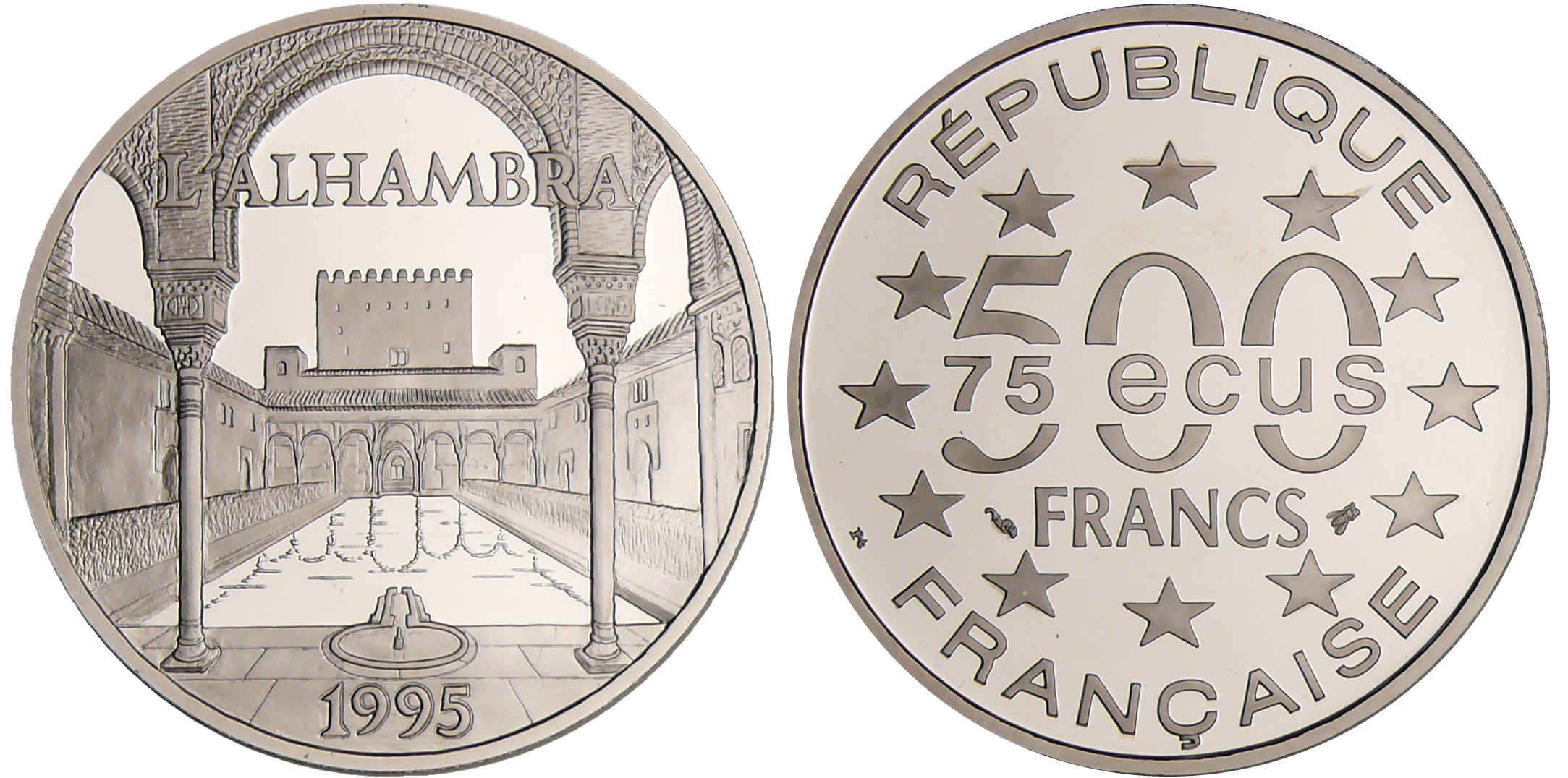 Monument de l’Europe – Espagne – L’Alhambra 75 écus / 500 francs 1994 platine